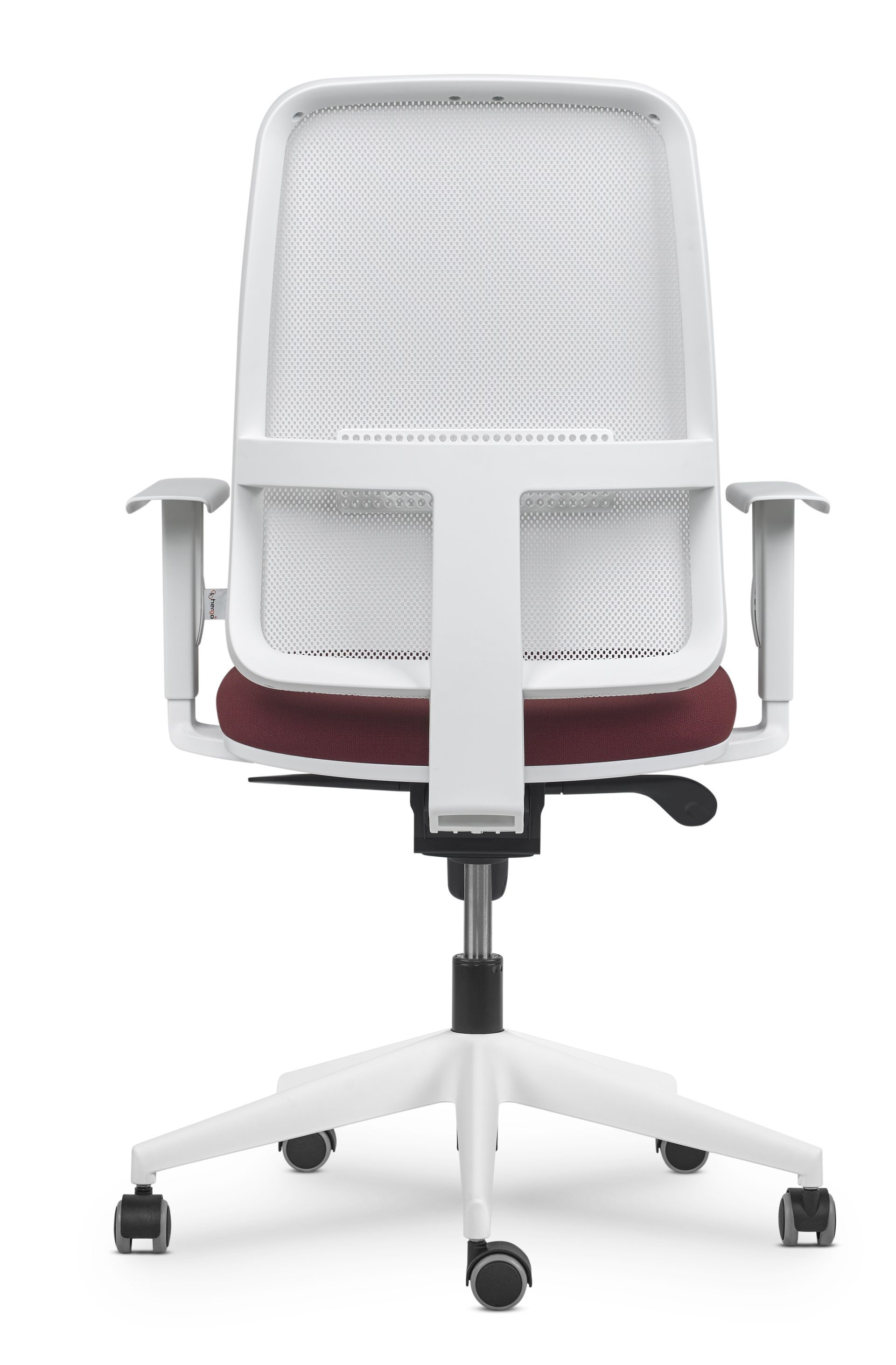 - Silla con respaldo de maya transpirable, mecanismos sincro, base de nylon y brazos 1D.