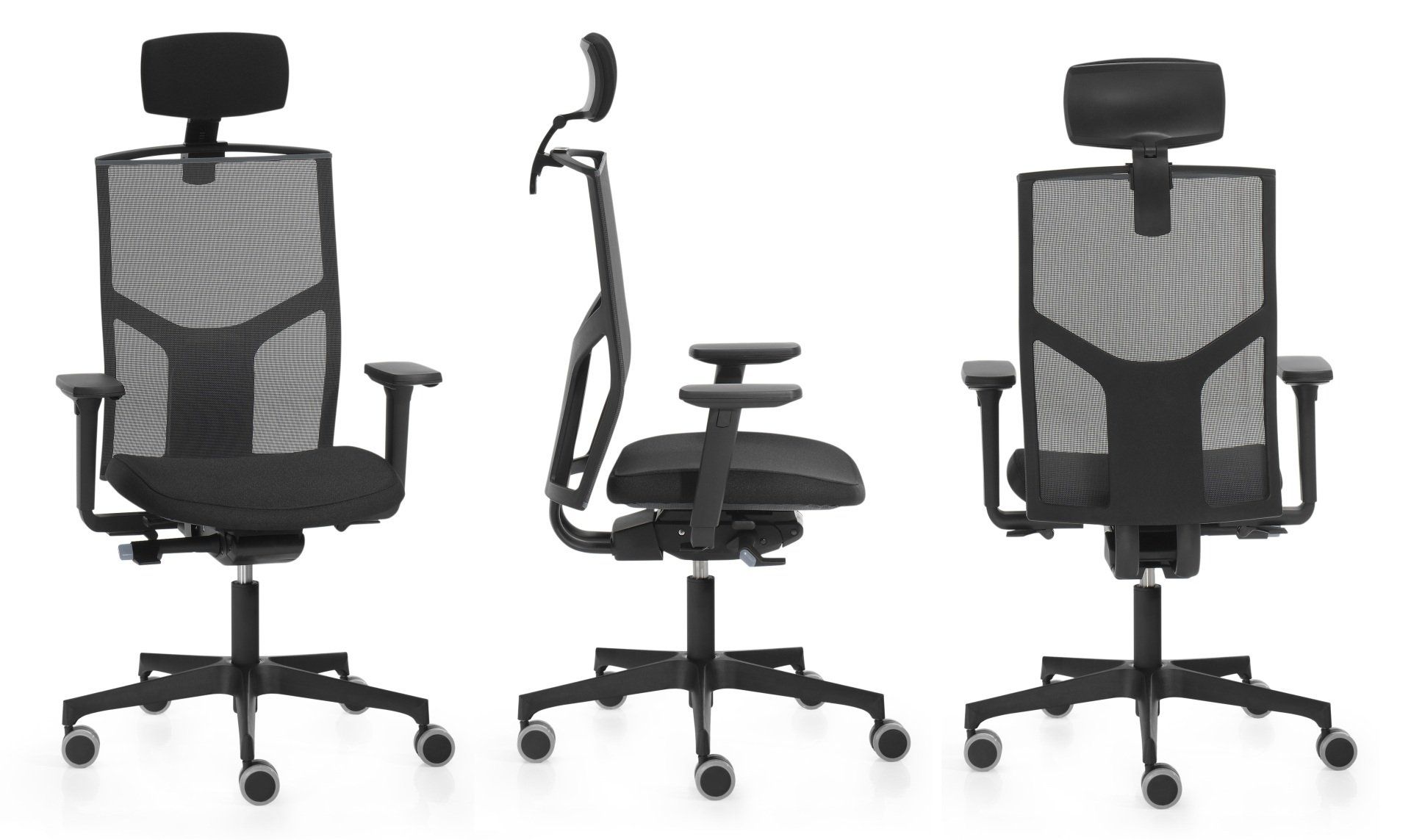 A02C321-4R - Silla respaldo alto, mecanismo sincro desplazador, base de nylon, brazos 4D y reposacabezas.