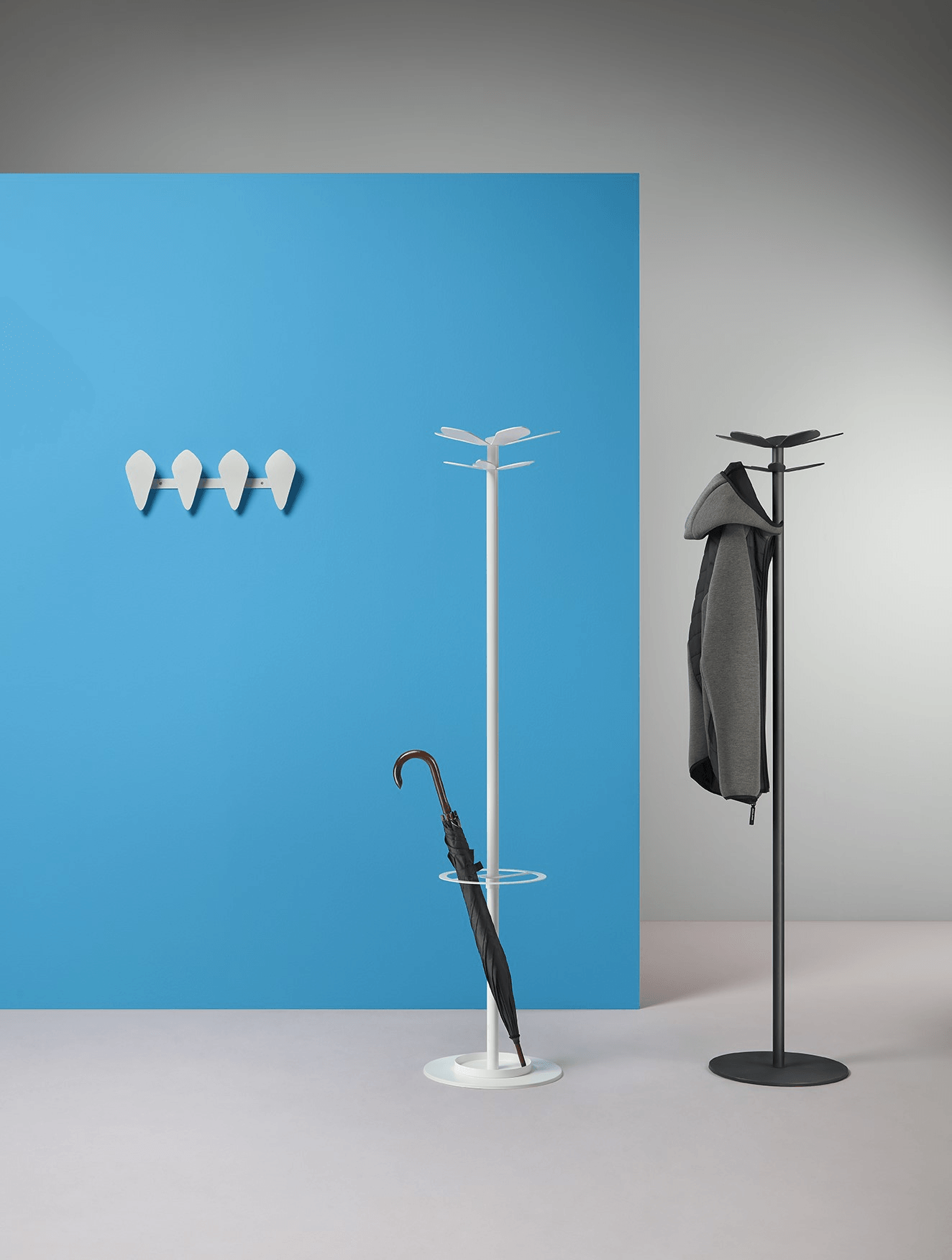 Colección de percheros murales y de pie. Disponible en diferentes tamaños y en 3, 4 y 6 perchas. Ideales tanto como para el mundo de la oficina como el habitat.