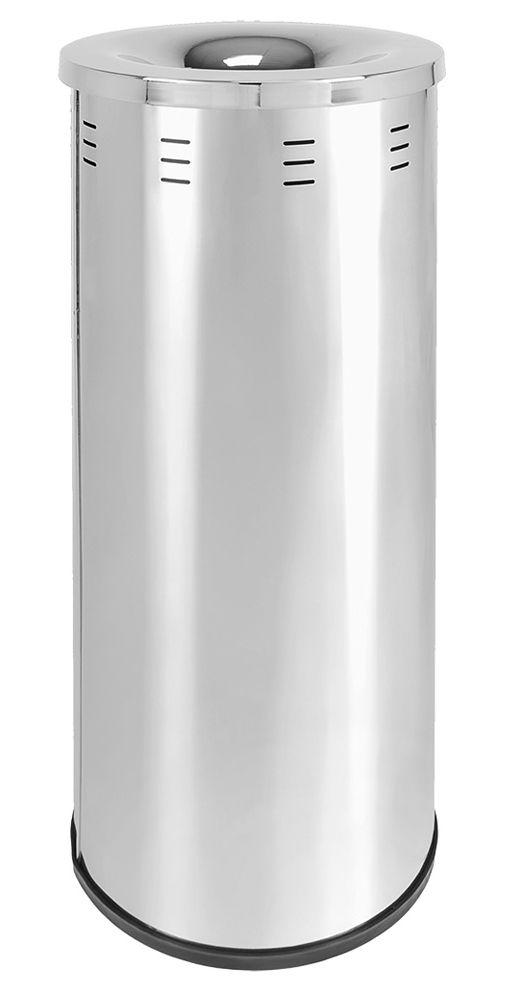 Papelera de chapa de acero inoxidable con perforados superiores.
