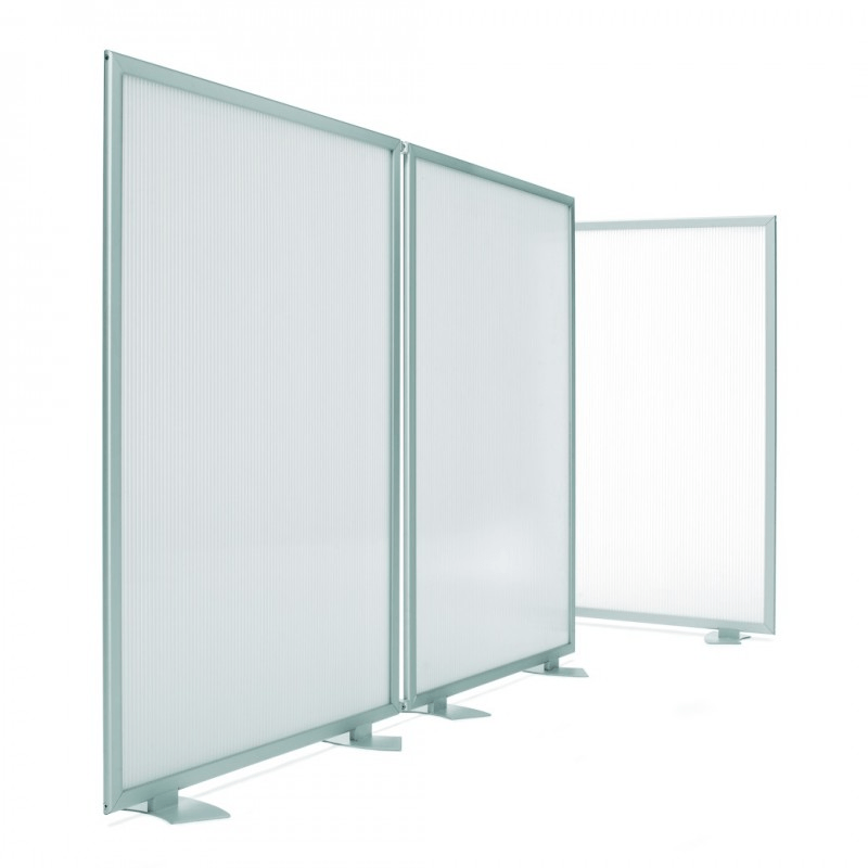 Estructura de aluminio anonizado. Con pies trapezoidales metálicos. Disponible en plata mate, antracita o blanco.