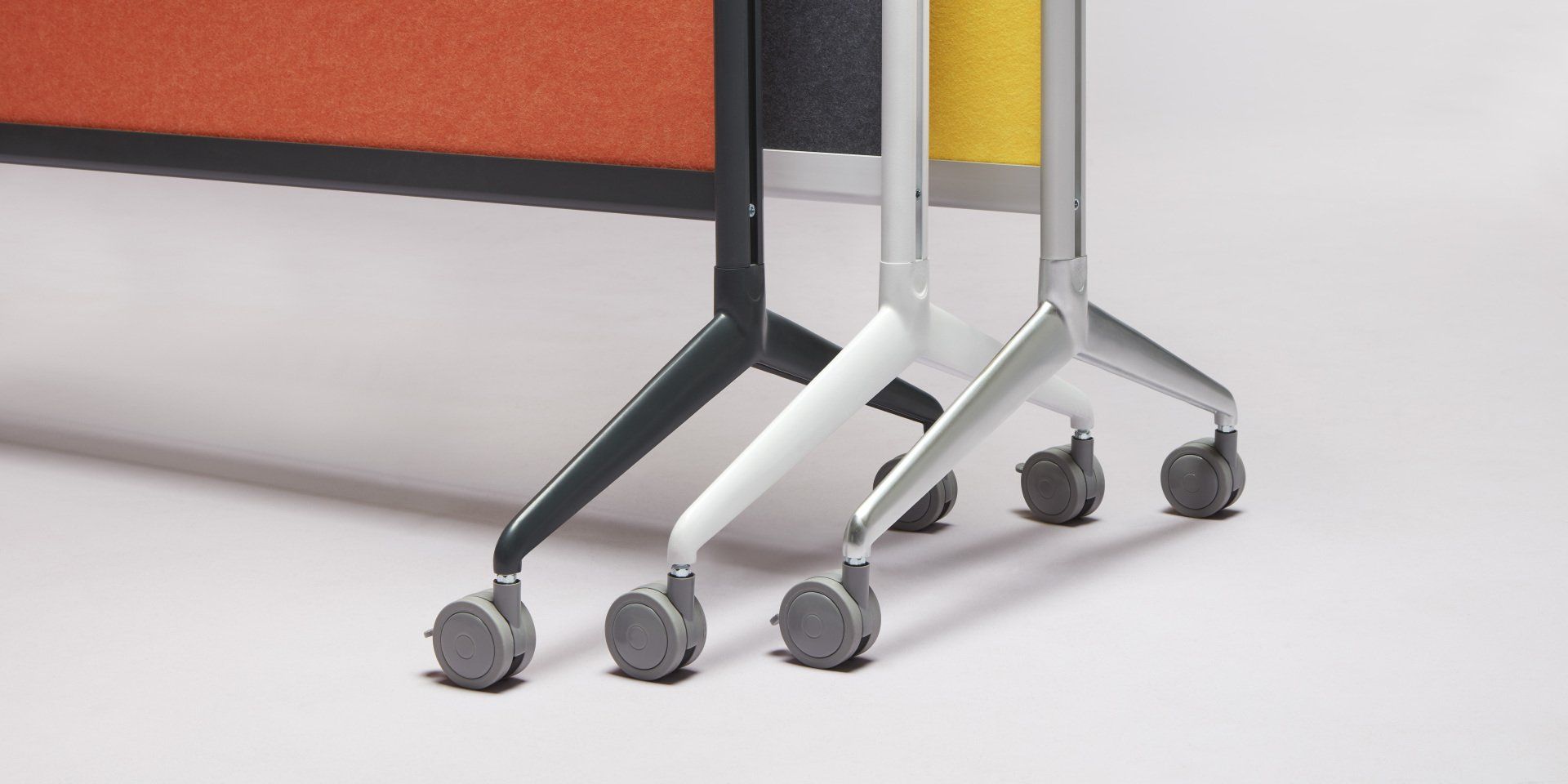 Estructura de aluminio anonizado, con pies en Y de fundición de aluminio con ruedas. Disponible en plata mate, antracita o blanco.