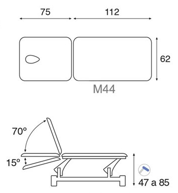 - Cabecero regulable mediante actuador hidráulico de -15º a 70º.
