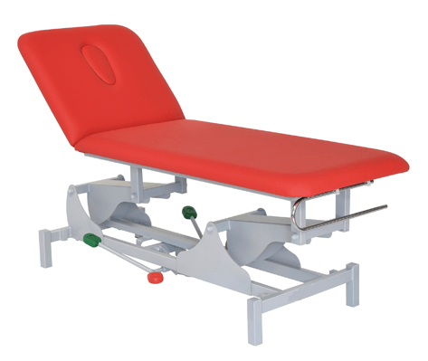 Mesa de dos secciones.Regulable en altura mediante actuador hidráulico accionado por pedales bilaterales.