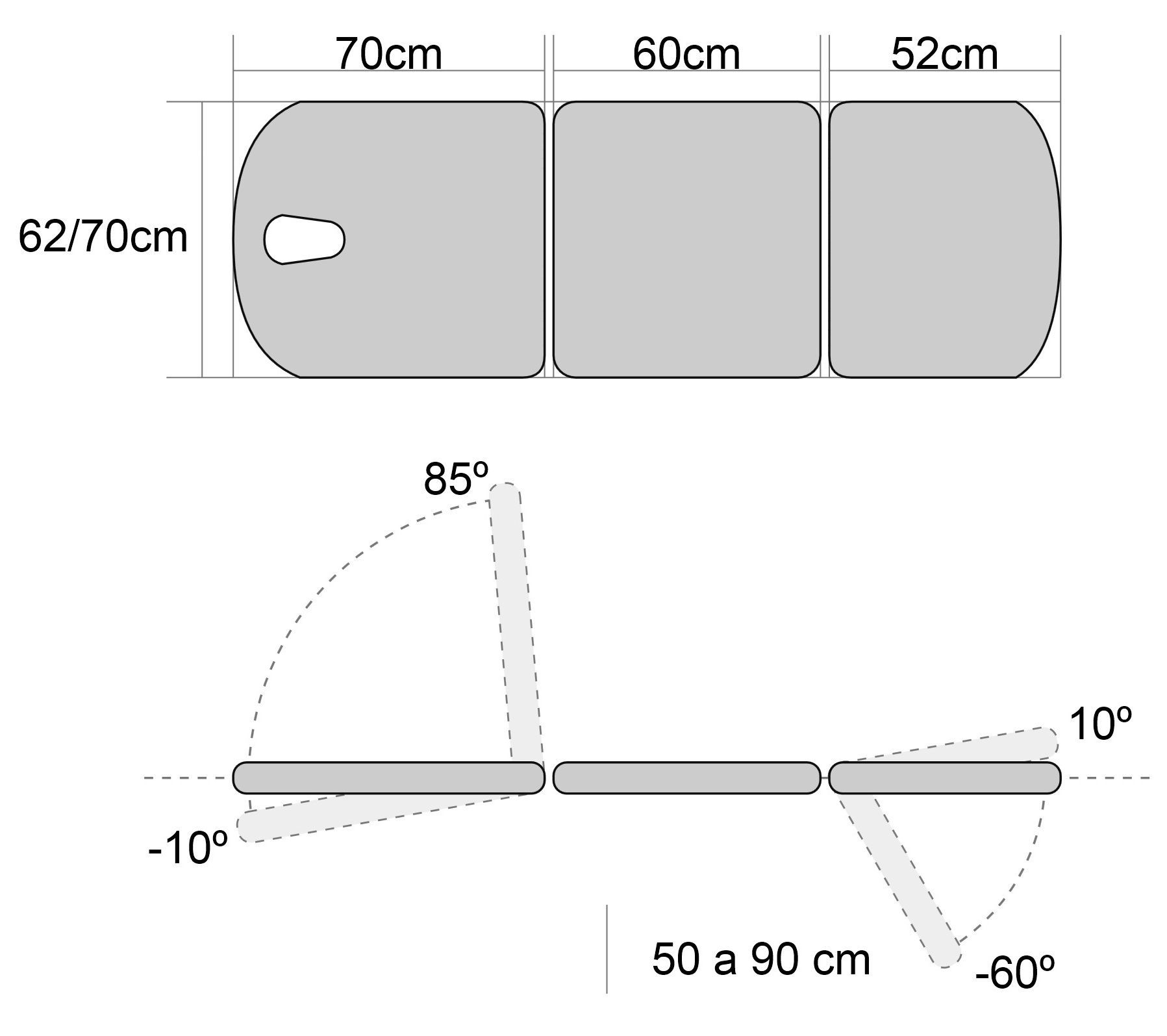 - Piecero elevable/reclinable mediante palanca de -60º a 10º.