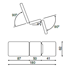 - Piecero abatible hasta posición horizontal mediante resorte a gas 90º