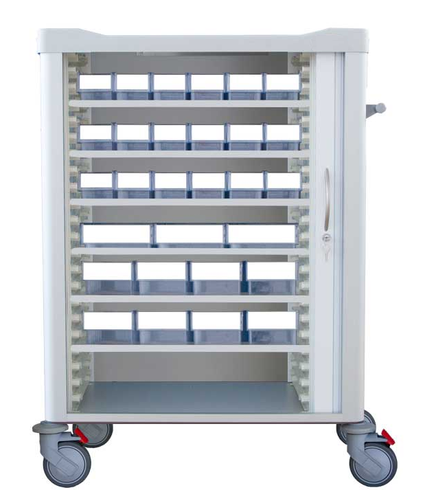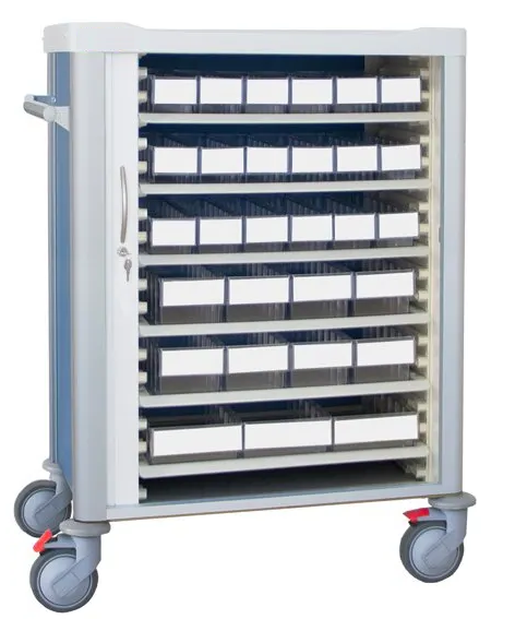 Los carros de reparto de medicación de dosis unitaria están adaptados a una amplia gama de cassettes, bandejas, cestas, cubetas para configurar el interior en base a las necesidades de los centros sanitarios. También son compatibles con múltiples accesorios y están disponibles en diferentes tamaños, todo esto hace que sean el mobiliario clínico ideal para las residencias y hospitales.Los carros hospitalarios de persiana están hechos de los siguientes materiales: