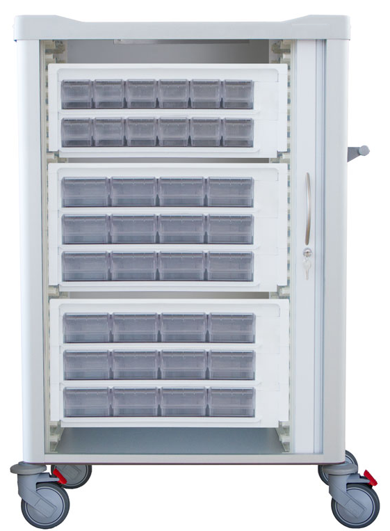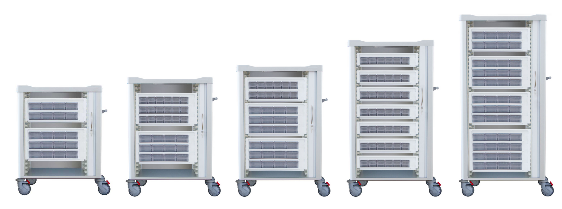En función de las diferentes opciones de tamaño, contamos con 5 modelos de carros de medicación unidosis.