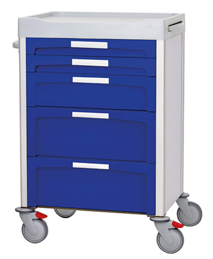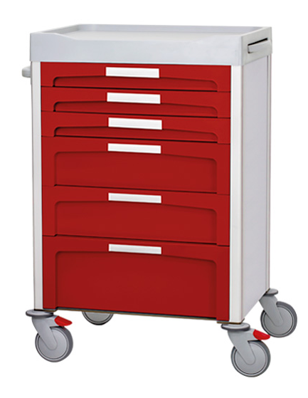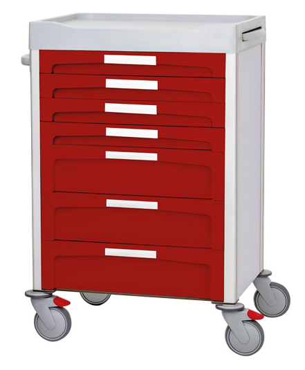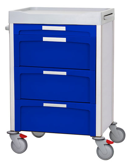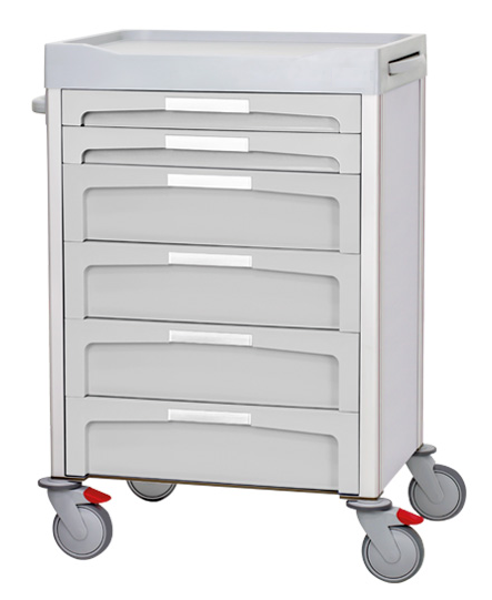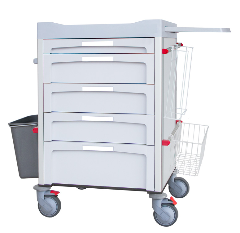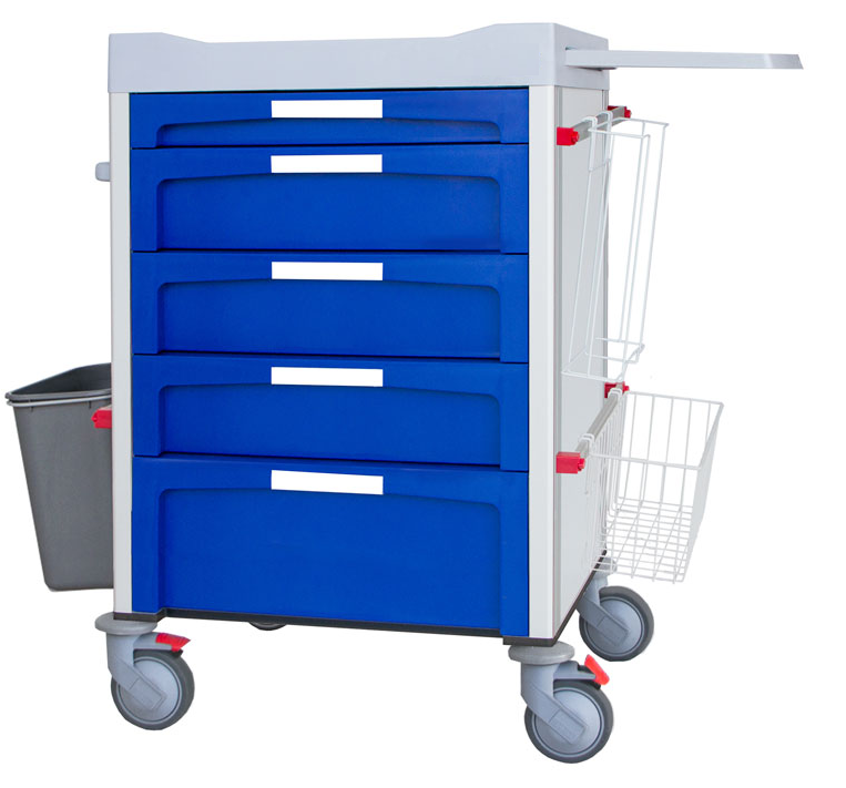 Carro perfecto para guardar y trasladar material sanitario de forma organizada en un centro hospitalario o geriátrico y así facilitar las tareas de curación del personal de enfermería, geriatría y auxiliares.