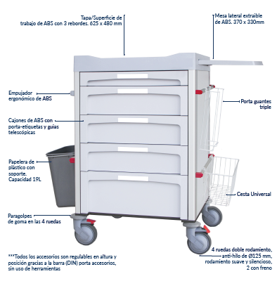 Amplia gama de accesorios que permiten adaptar el carro a cualquier necesidad.