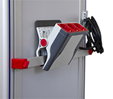 Todos los accesorios son regulables en altura y posición, gracias a su instalación sobre la barra (DIN) en los perfiles de aluminio. No requiere de herramientas.