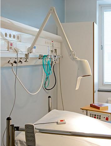Luminaria de cabecera de cama que permite al paciente dirigir la luz exactamente
