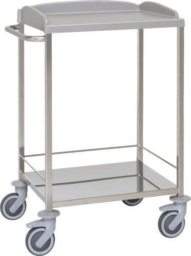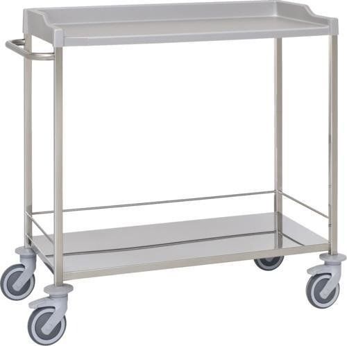 Carro multifuncional con un estante inferior de acero inoxidablecon barandilla a tres lados.