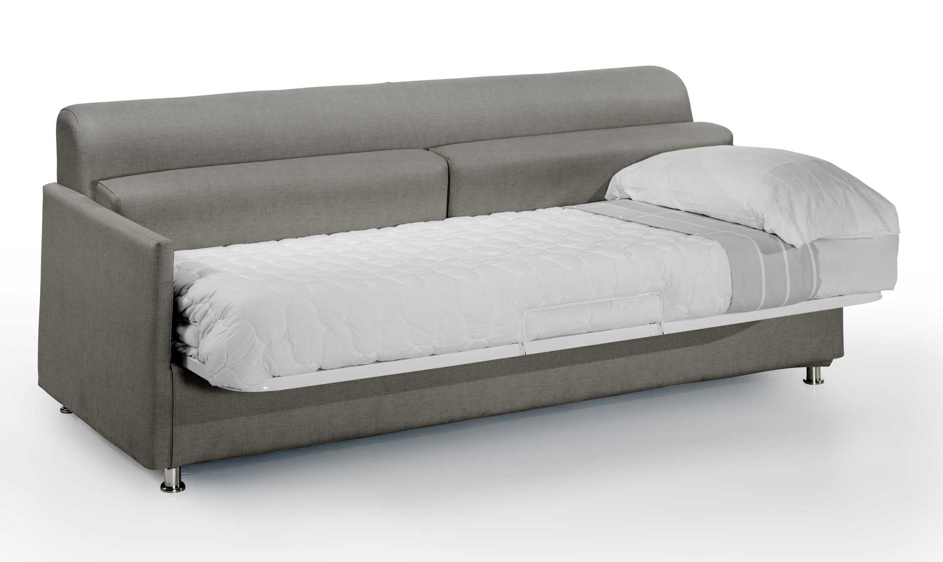 Mecanismo de salida de la cama robusto, fiable y sencillo, evitando la fatiga de los trabajadores y usuarios como consecuencias de su sistema pivotante que permite acceder al colchón sin necesidad de tener que quitar los cojines del asiento.Permite el acceso al colchón extrayendo los cojines mediante un sistema de compases.El sistema está desarrollado para guardar en su interior dos sabanas, una colcha y una almohada.